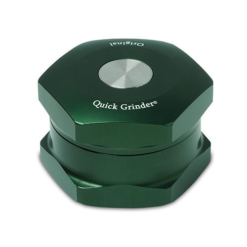 Quick Grinder V3 GRÜN ist ein manueller Grinder aus eloxiertem Aluminium, kompakt und funktional, entwickelt, um trockenes Material schnell, sauber und mühelos zu zerkleinern.